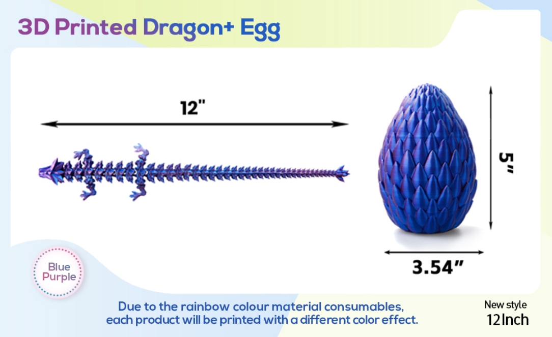 Home > 3D Printed Dragon,Dragon Eggs with Dragon Inside,Surprise Dragon Egg Toy,12'' Full Articulated Crystal 3D Dragon